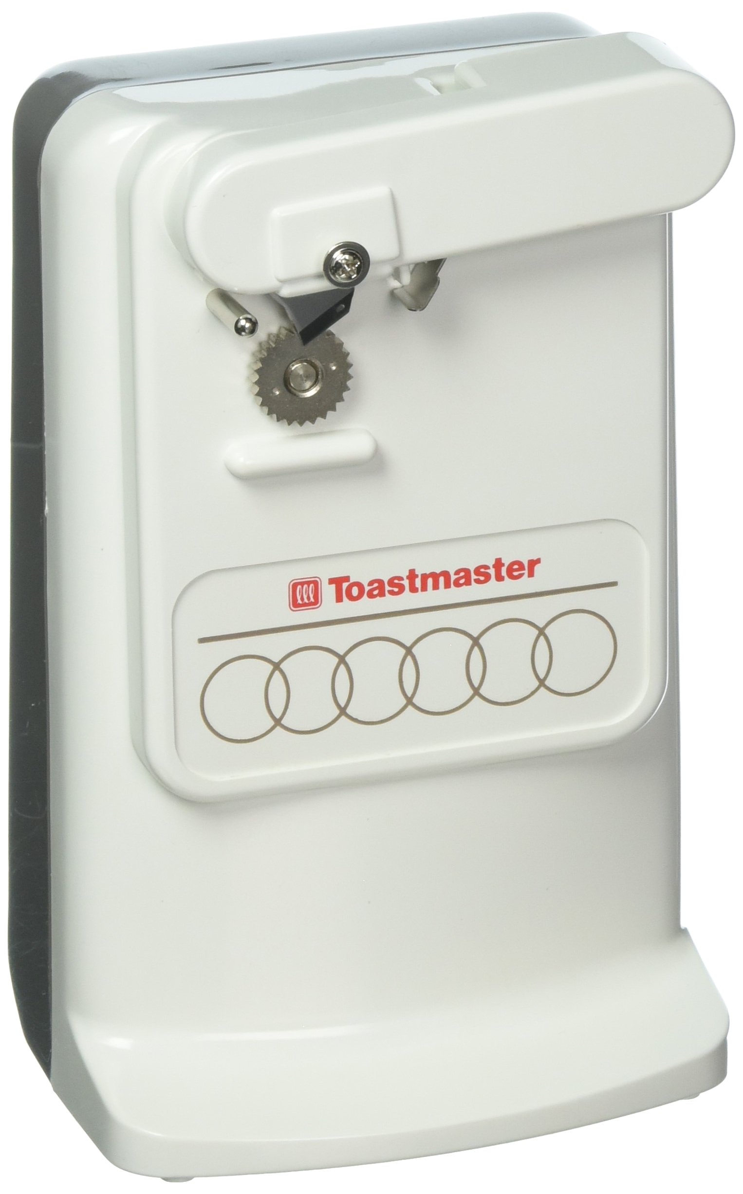 The Toastmaster 498002 is an electric can opener and knife sharpener designed for convenience and durability. It features an automatic shut-off function, a removable cutting assembly for easy cleaning, and hidden cord storage for a tidy countertop.