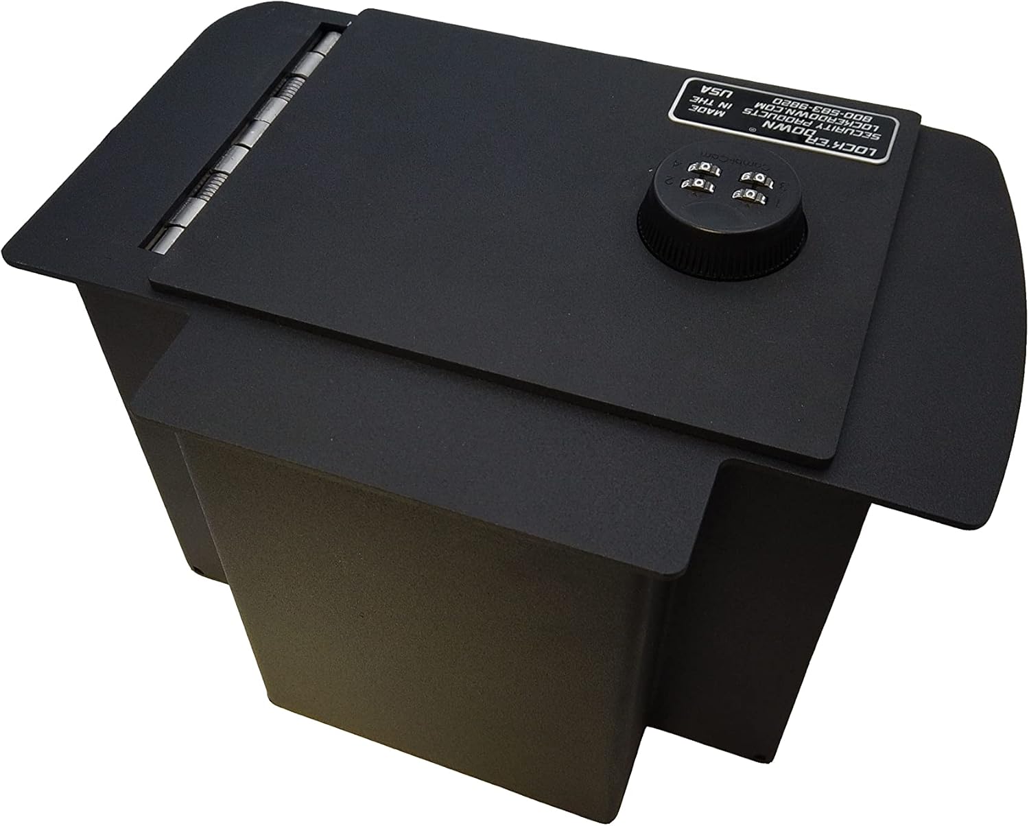 Your Lock'er Down console safe is equipped with a 4-digit combination lock. The factory default combination is typically 0-0-0-0. It is highly recommended to change this combination immediately after installation.
