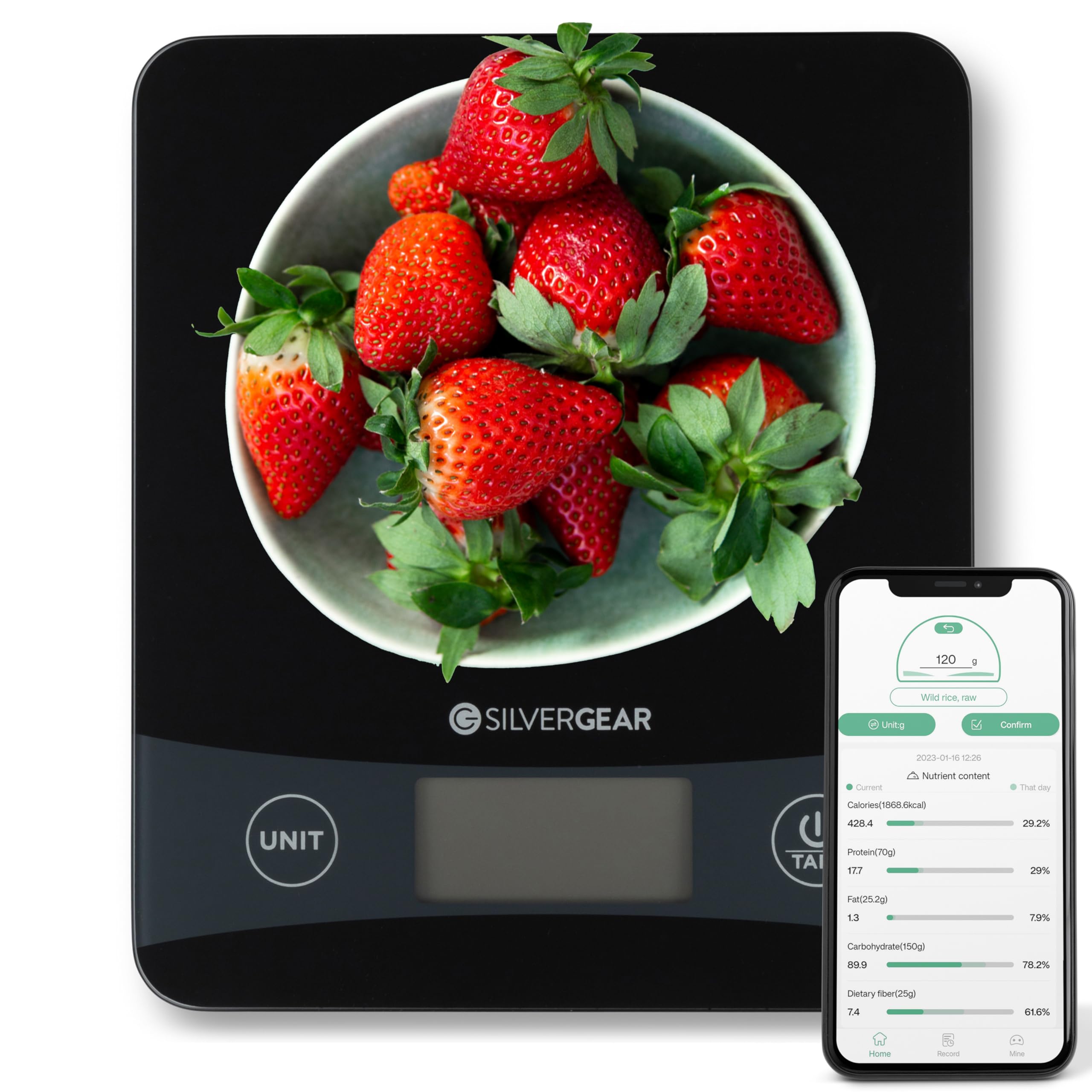 Thank you for choosing the Silvergear Smart Food Scale. This electronic kitchen scale is designed to help you accurately track your nutritional intake, including calories, proteins, fats, and more, through its dedicated mobile application. With a precision of 0.1g and a maximum capacity of 5kg, it provides reliable measurements for your dietary needs.